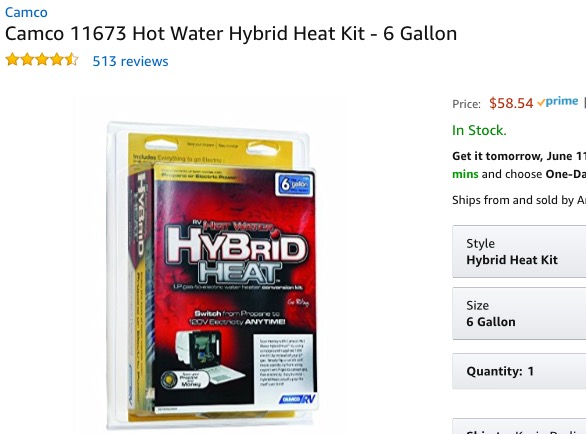 Okay, decided it was time to install the Camco Hybrid 6 gallon kit. Basically it adds a 425watt electric heating rod and thermostat so you can use 110volt power to heat water instead of (or in addition to) the regular gas mode.