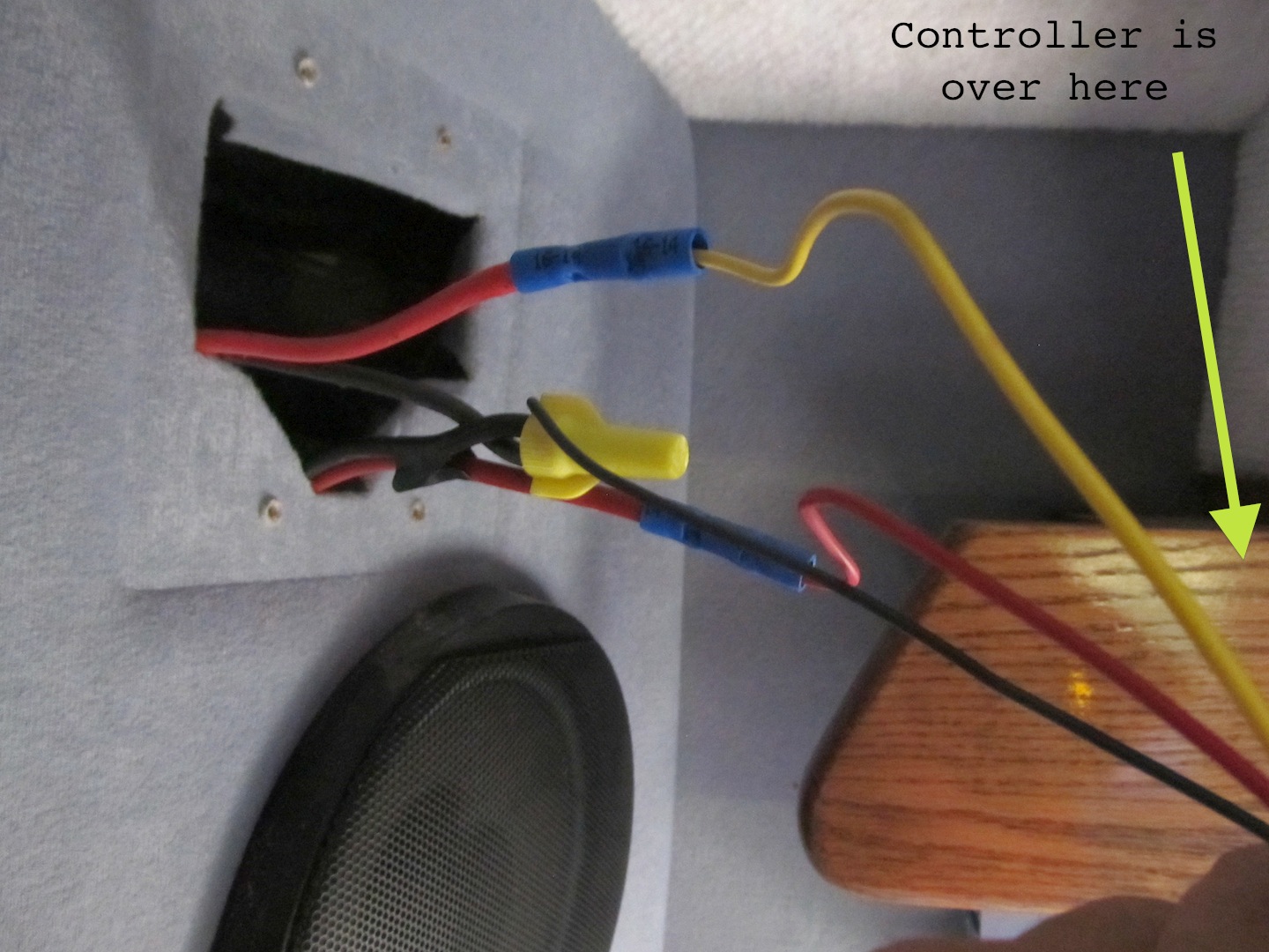 I'm not sure if the controller is properly connected, because the fused wire on the controller has never been connected to anything. The three wires on the controller, a red, a yellow, and a black are connected as follows; the red wire is connected