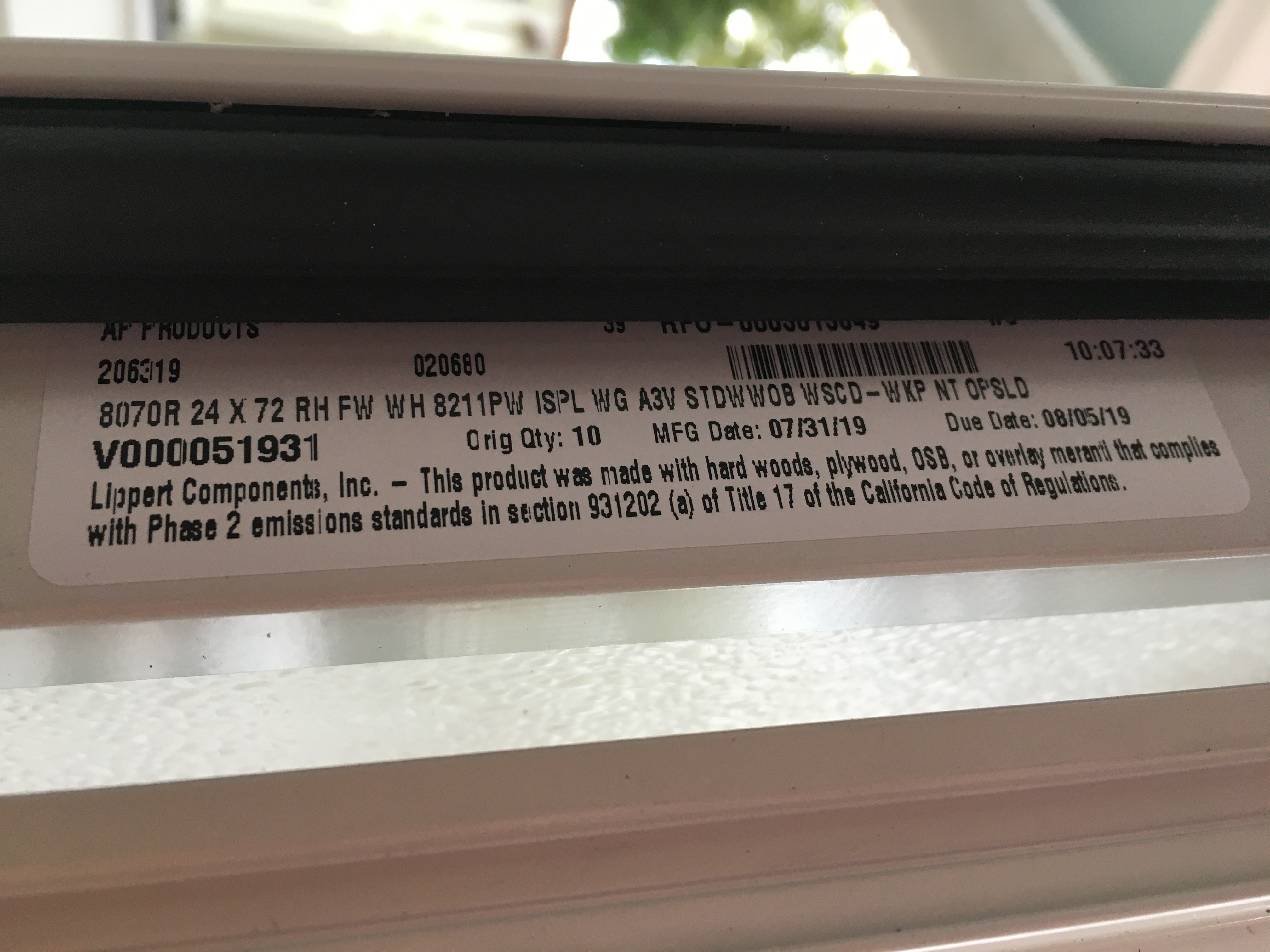 I will be emailing Lippert to see if the glass will work with our door window, but keeping the white frame.