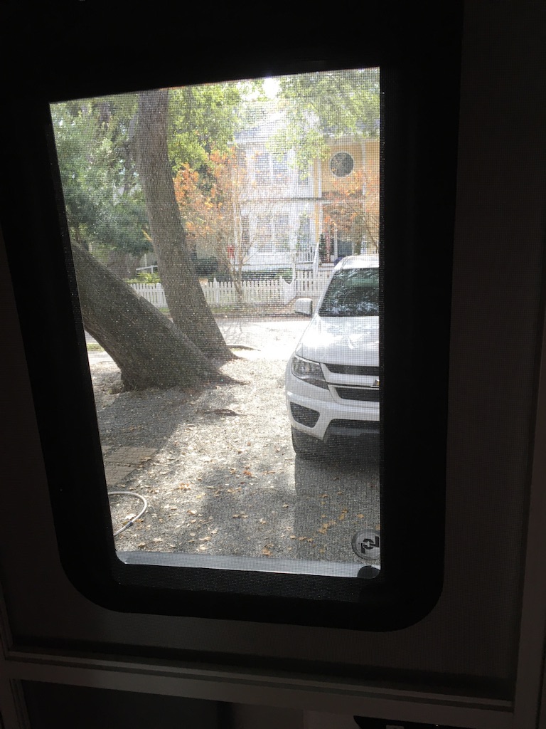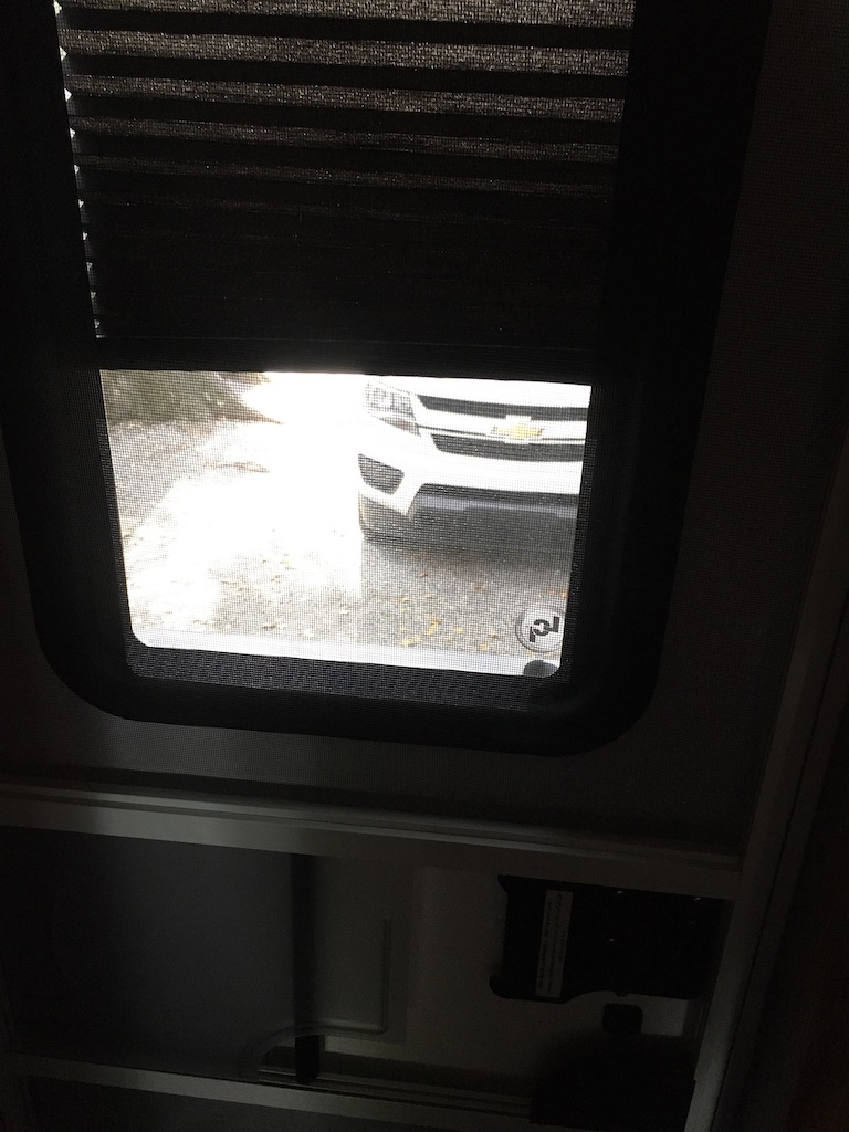 One other thing...raising/lowering the shade requires opening the back door. On my old camper the shade was inside the screen door. I may put something there if it is a problem.
