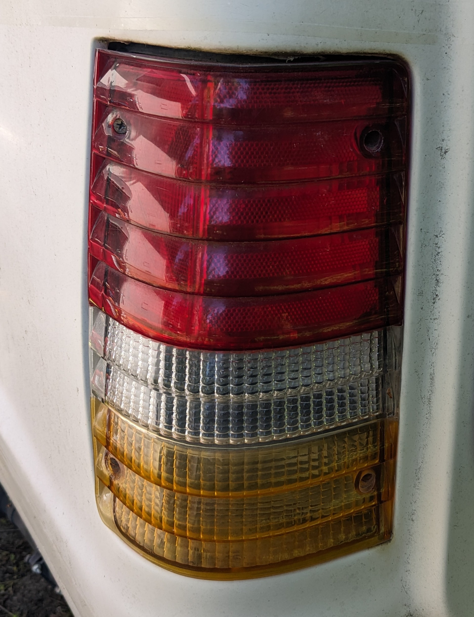 Amber AND red flash when turn signal or hazards are on. Red is running light, and goes bright for brake. White is reverse. Is that what you mean? They're wired like trailer lights. So if the brake pedal is pushed and the turn signal is on, the whole thing flashes. A bit dumb. Here is my lens. It's from an Aerostar.