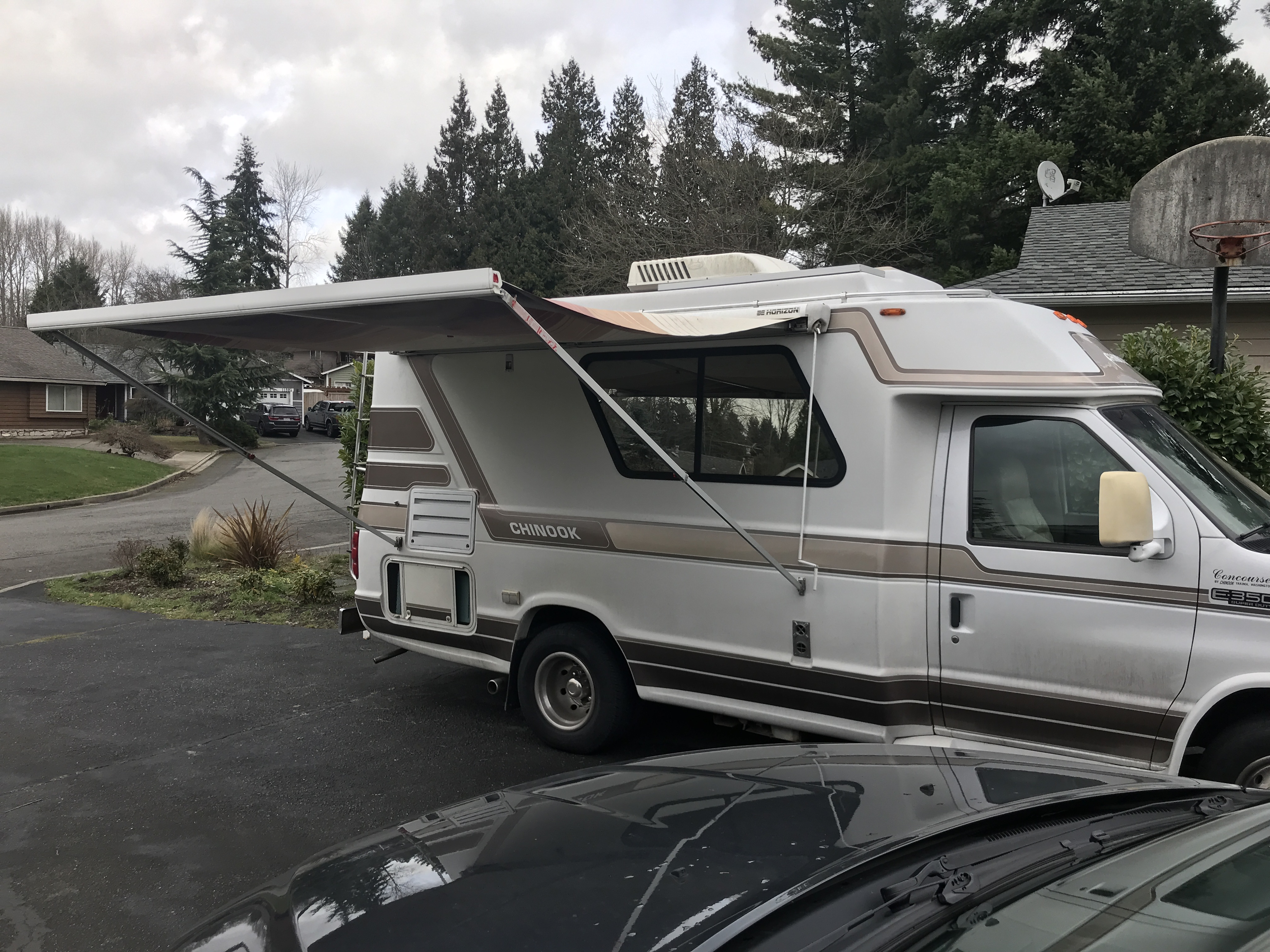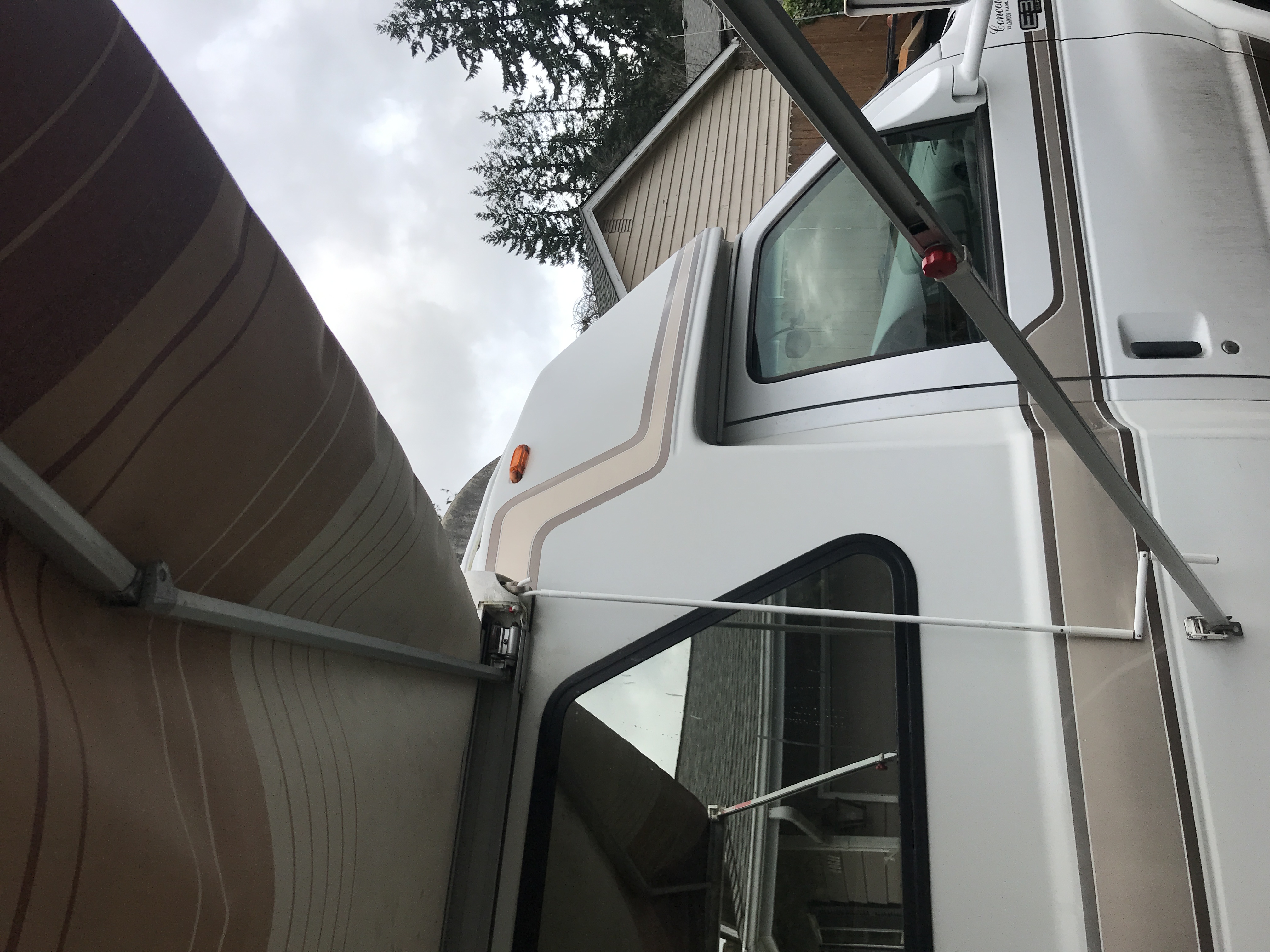 You know, I wonder if it was ordered without an awning and someone added it later? They might have put it in a slightly different place vs. the Chinook pattern (looks to be about 6" forward, which causes different foot placement. That's maybe a little awkward, but OTOH it covers more of the dining window.