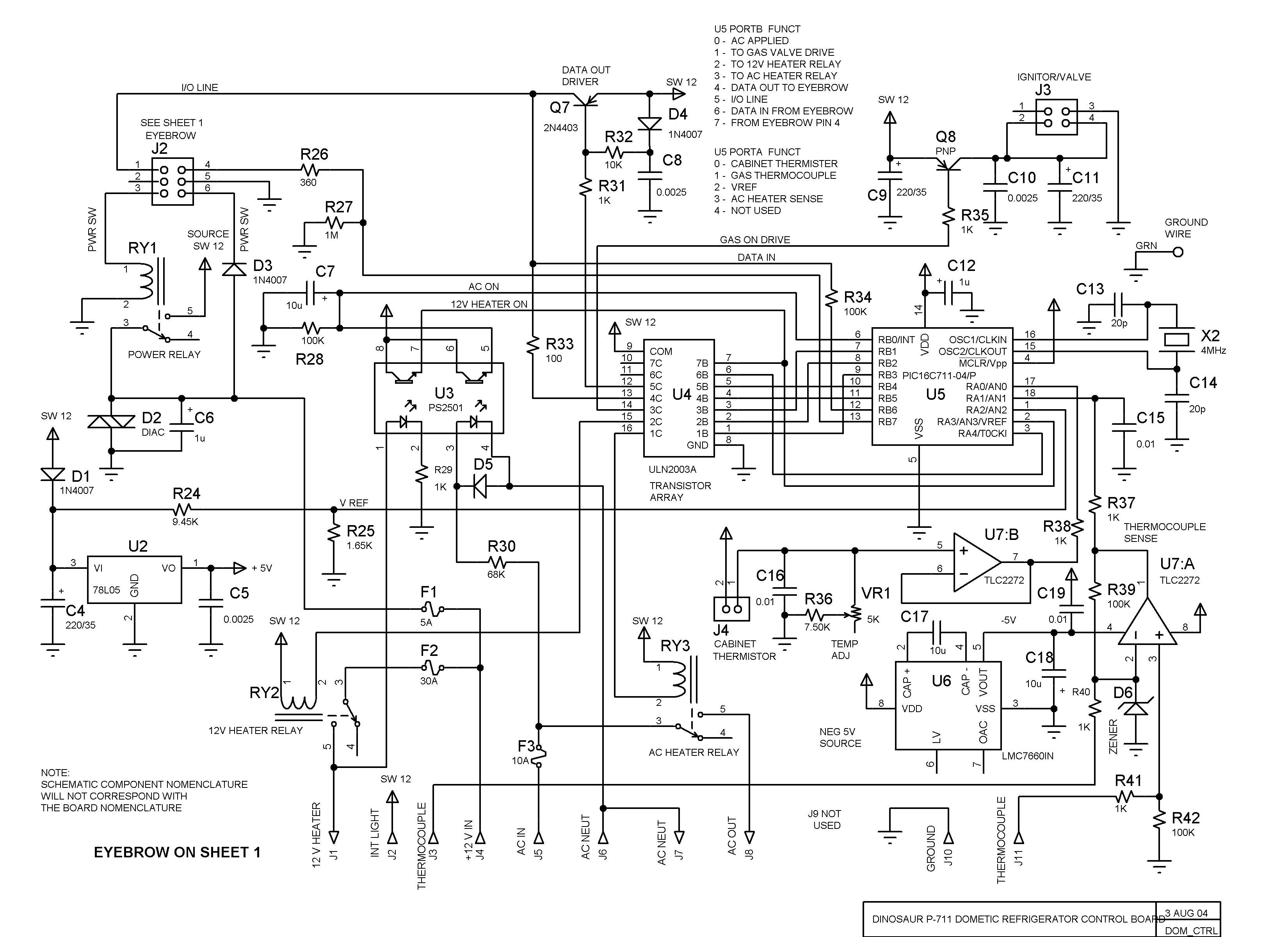 Dinosaur refrigerator control module schematics
