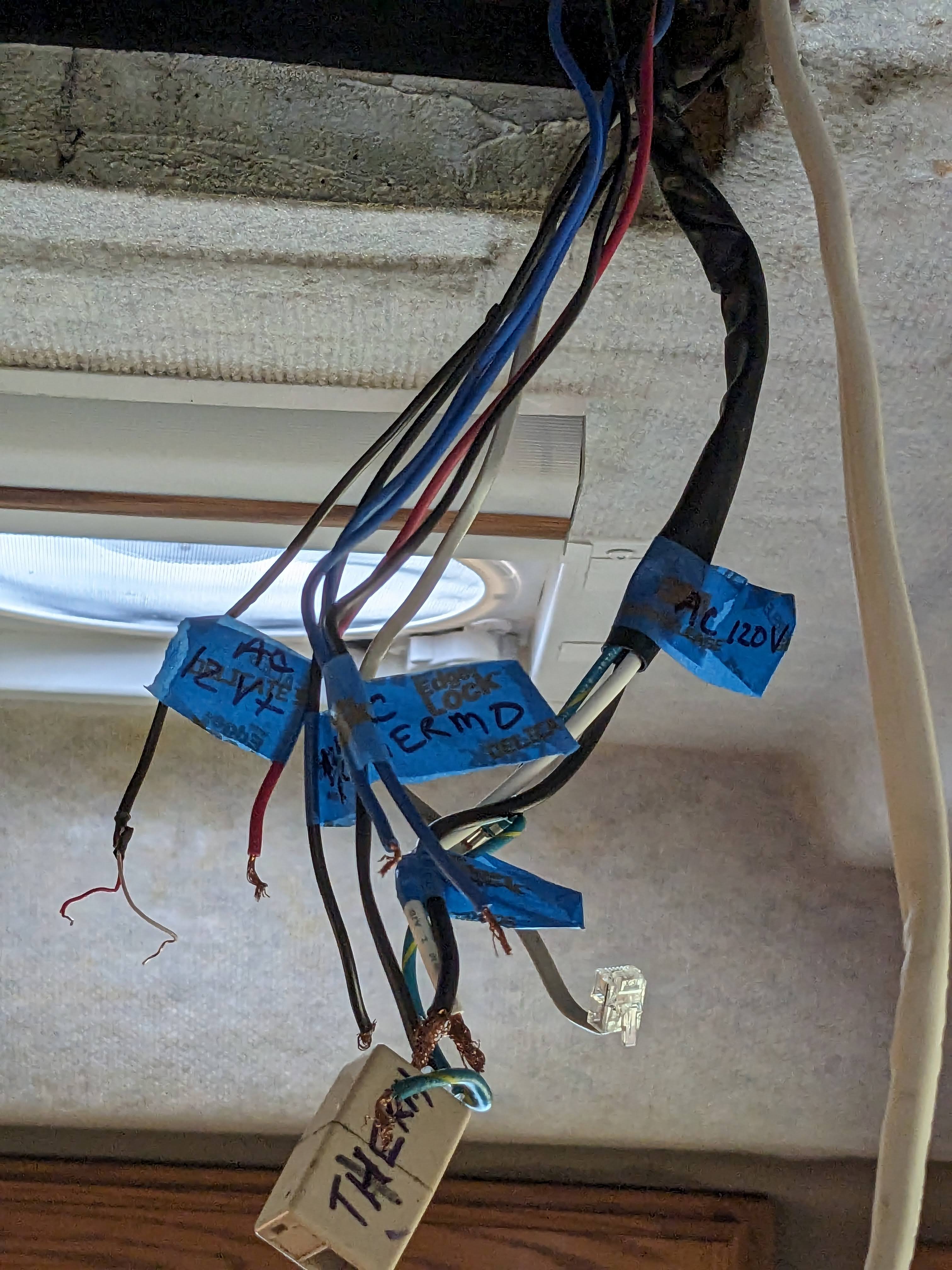 I've pretty much come to the same conclusion. Fortunately, I took pix before I dewired the old Dometic. Along with the phone type cable were several other individual wires. Two blue and a red and black which I labeled (see pic). After watching a boatload of You Tube vids on installing, upgrading and fixing Dometic RV heating and cooling systems, I'm pretty sure the red and black wires are DC power to the furnace and the two blue wires are for the thermo stat. So, as you mentioned, I'm going to reconnect the power wires to the DC source that they had been connected to in the ceiling. I'm going to strip and use 2 of the wires in the phone cable to get to my new wall mount, heat only thermo. I will then power on and see what happens.