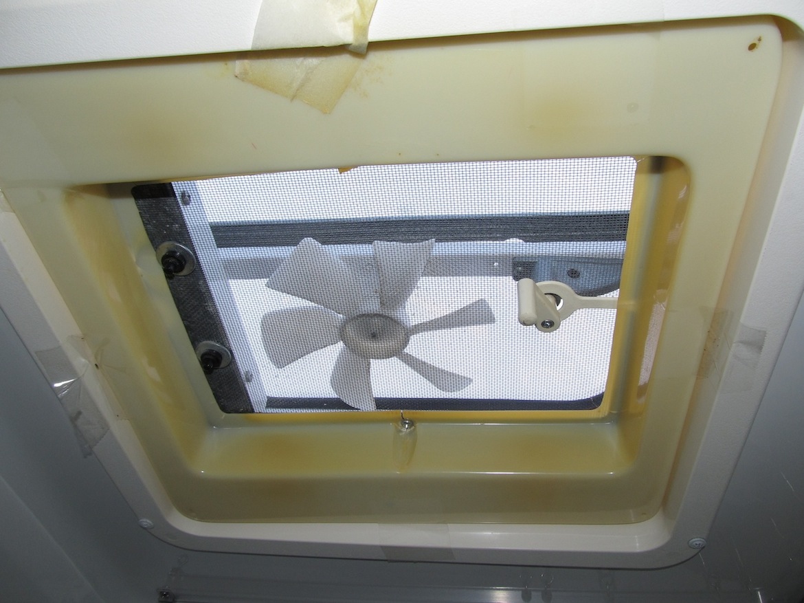 Here is a photo that shows the original fan/light (with the original cracked/yellowed light lens, which I have since changed for a new lens - still not the most robust construction though).