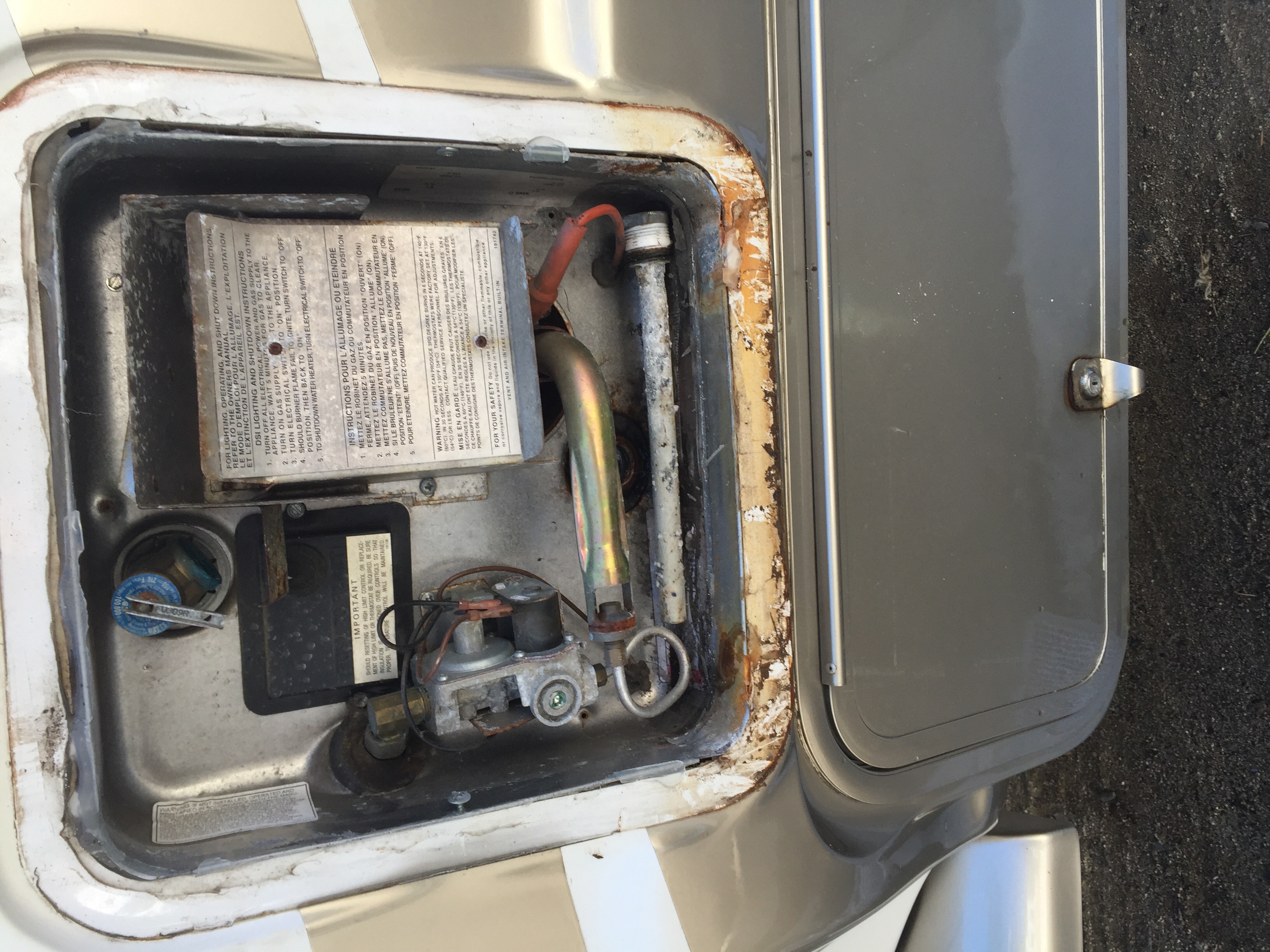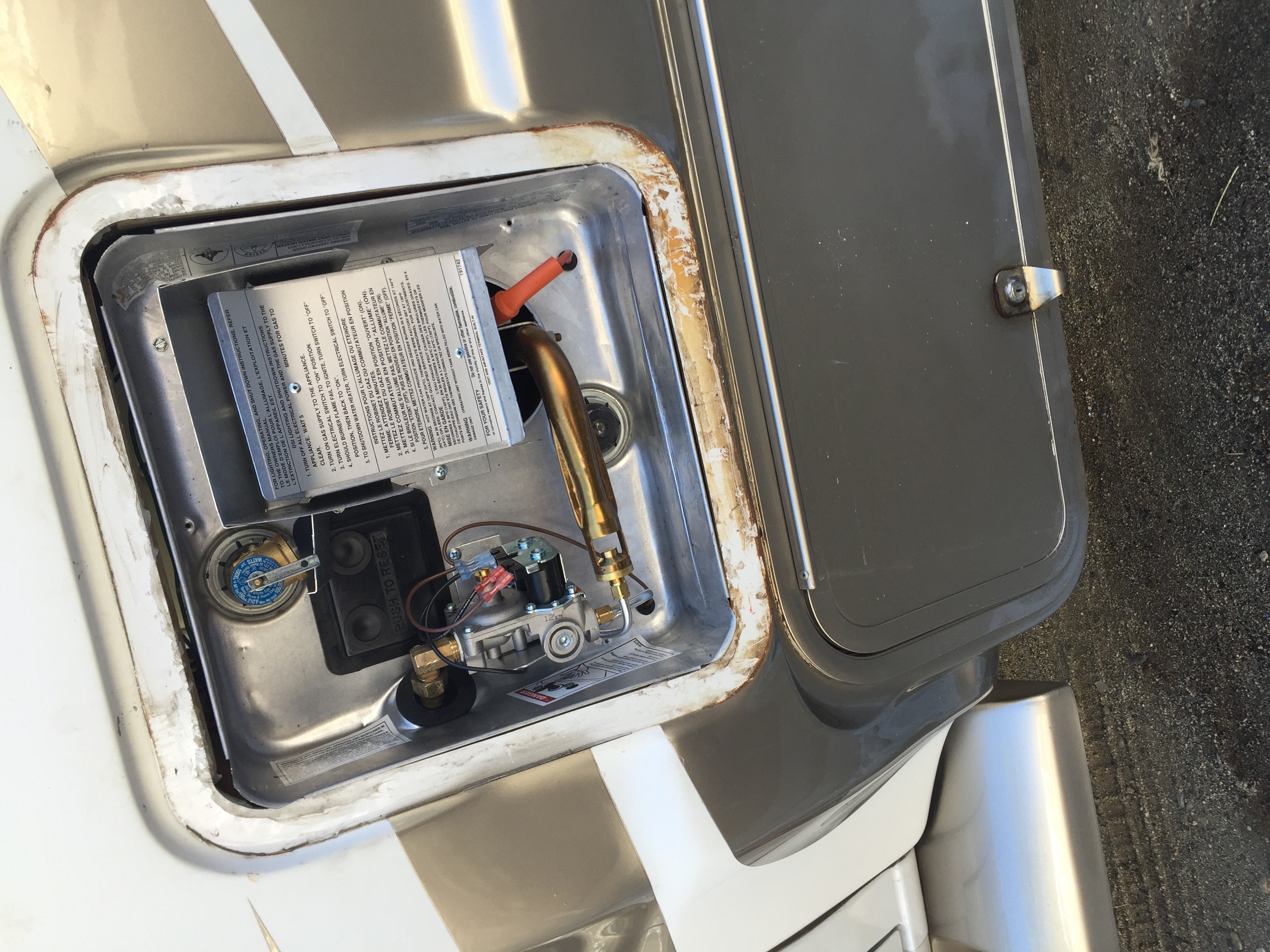 Thanks to my improper winterization, I got to replace the suburban hot water heater with a new one. After looking at the old one closer and closer, it wasn't such a bad thing to replace it.